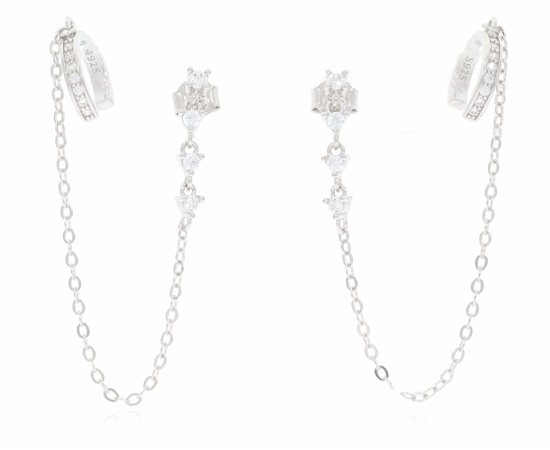 עגיל לוטוס כסף משובץ